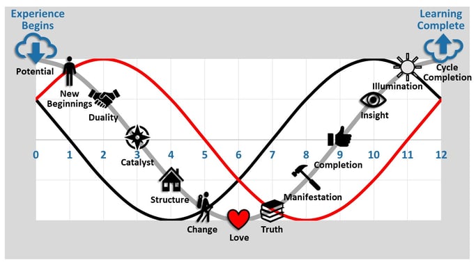 The Base-12 Numerology Cycle is the vibrational pattern of self-discovery we explore as we journey along our Life Path. Every experience we encounter falls somewhere within the twelve quantum energies from 0 to 11 and presents a unique learning opportunity. How we respond with free will determines how easy or difficult that experience may seem. The 12 energy represents both the completion of one cycle (since "12" in base-10 equals "10" in base-12, or 1 complete cycle of 12 plus 0 remainder) and...